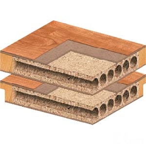 Экструзионное трубчатое ДСП. Внутри каркаса усиленных межкомнатных дверей закладывается экструдированный трубчатый ДСП немецкого производства. Для улучшения шумоизоляционных качеств в коробку предустановлен уплотнитель соответствующего цвета. Звукоизоляция усиленных дверей составляет 30 ДБ. Из-за повышенной массы данные двери крепятся на трех петлях.