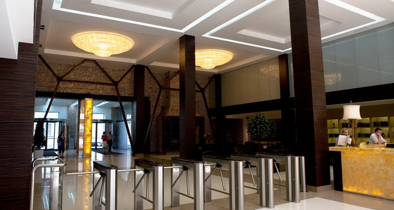 В Бизнес-центре «Омега Плаза» установлены усиленные и сотовые двери в покрытии меламиновая пленка декоров Венге, Беленый дуб, Орех, Бук, Дуб