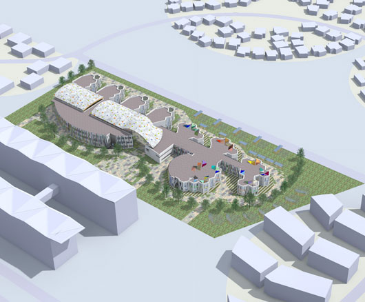 «Семейный кампус»- это здания школы и детского сада, соединенные вместе переходом. В нем имеются места для внеурочной деятельности: занятий спортом, художественным и техническим творчеством, а также для совместных занятий детей и родителей. Здание позволяет организовать образовательный процесс в соответствии с требованиями программ Международного Бакалавриата. Общая площадь кампуса составляет 22300 м.кв.