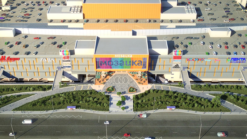 ТЦ «Мозаика» считается первым крупнейшим центром в Южнопортовом районе Москвы. У комплекса хорошее местоположение, он имеет подъезд с двух дорог, которые ведут из центра Москвы. Для удобства посетителей в ТРЦ - парковка на 2500 мест. Концепция ТРЦ «Мозаика» принадлежит американскому архитектурному бюро «Altoon + Porter Architects», ими успешно реализовано несколько проектов в Москве, один из которых ТРЦ «Атриум». В торговом центре отлично сочетается торговая концепция и инфраструктура для развлечений. В центре более 200 известных магазинов, гипермаркет электроники, продуктовый гипермаркет, гипермаркет товаров для спорта, детские товары, кинотеатр, рестораны и фуд-корт.